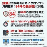 2025年4月8日、MicrosoftはWindows11/10向けの重要なセキュリティ更新プログラム(月例)をリリースしました。対象の脆弱性を悪用された場合、プログラムが異常終了したり、攻撃の対象となる場合がありますので早急に対応する必要があります。
